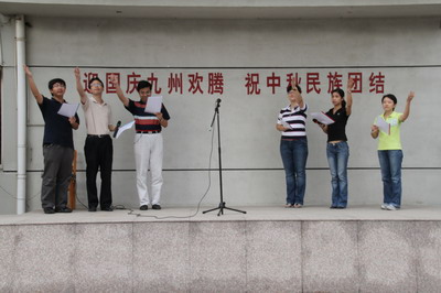 接着,初二年级的学生合唱的《歌唱祖国》和《红旗飘飘》优美雄壮的歌声倾注着的是学生们对国家的情意。其他年级的不少同学也不由自主的低声哼起旋律,更有一些同学暗暗打起节奏。一曲唱罢,台下响起了响亮的掌声。这掌声不仅仅是献给台上唱歌的同学们,更是每个学生激动内心的写照。
