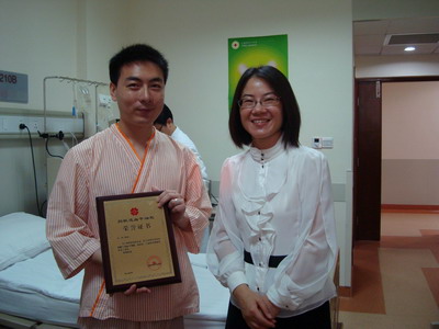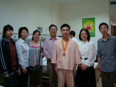 在和蔡老师的家属聊天中,我们获知:2007年12月,蔡庆老师深思熟虑后主动报名加入了“中华骨髓库”,希望能有机会去挽救其他的生命。终于,蔡庆老师于2009年末得知自己与一名21岁的女大学生配型成功的消息。“从报名当志愿者的那天起,我就做好了随时捐献的心理准备,但没想到会这么幸运,还真与有需要的人配型成功了。”蔡老师的爱人是徐汇区的一名幼儿园教师,每天和孩子打交道的她同样充满了爱心,当听闻能救助一个人年轻的生命时,她也非常支持。