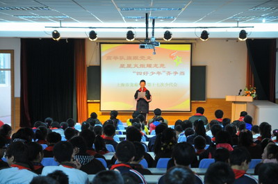 11月22日,经过近一个月精心准备的龙苑中学第十七届少代会日期举行。这天,整个校园里洋溢着节日的喜气。六到九年级的百余名少先队员与学校党政工团领导相聚在二楼小礼堂,总结过去一年里少先队工作的成果,聆听大队候选人的竞选演讲,投上庄严的选票;展望学校少先队工作的蓝图,共同分享成长的喜悦。在少先队橱窗内,一张张蕴含着候选人理想和希望的竞选海报无不显示着他们的自信和才能。