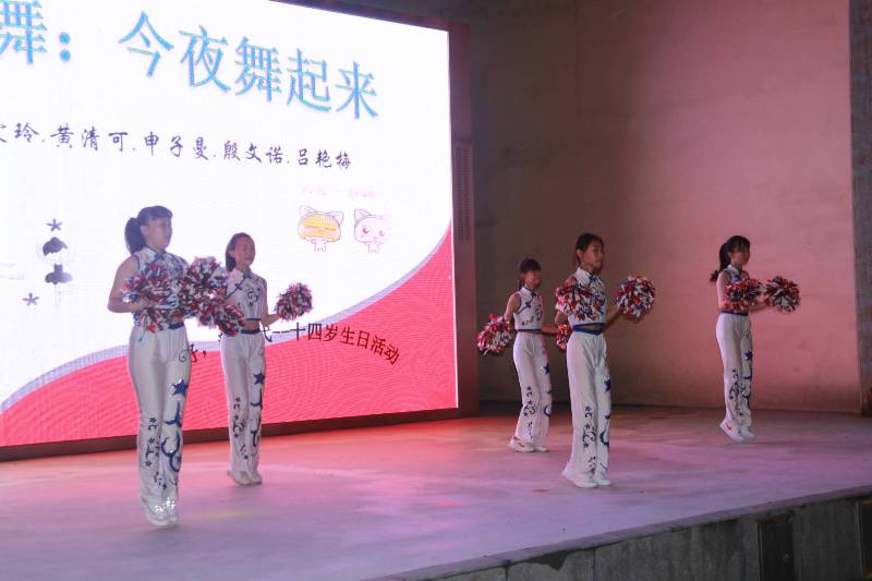 晚上的十四岁生日仪式是第一天活动的最大亮点,点燃蜡烛、品尝属于自己的生日蛋糕、感谢师恩,读着父母充满真挚话语的信件,不少同学动情、哽咽,使整个晚会现场充满浓浓的感动。随后龙苑中学、梅园中学的校际联欢活动精彩纷呈、掌声不断,更是将晚会推向了高潮。