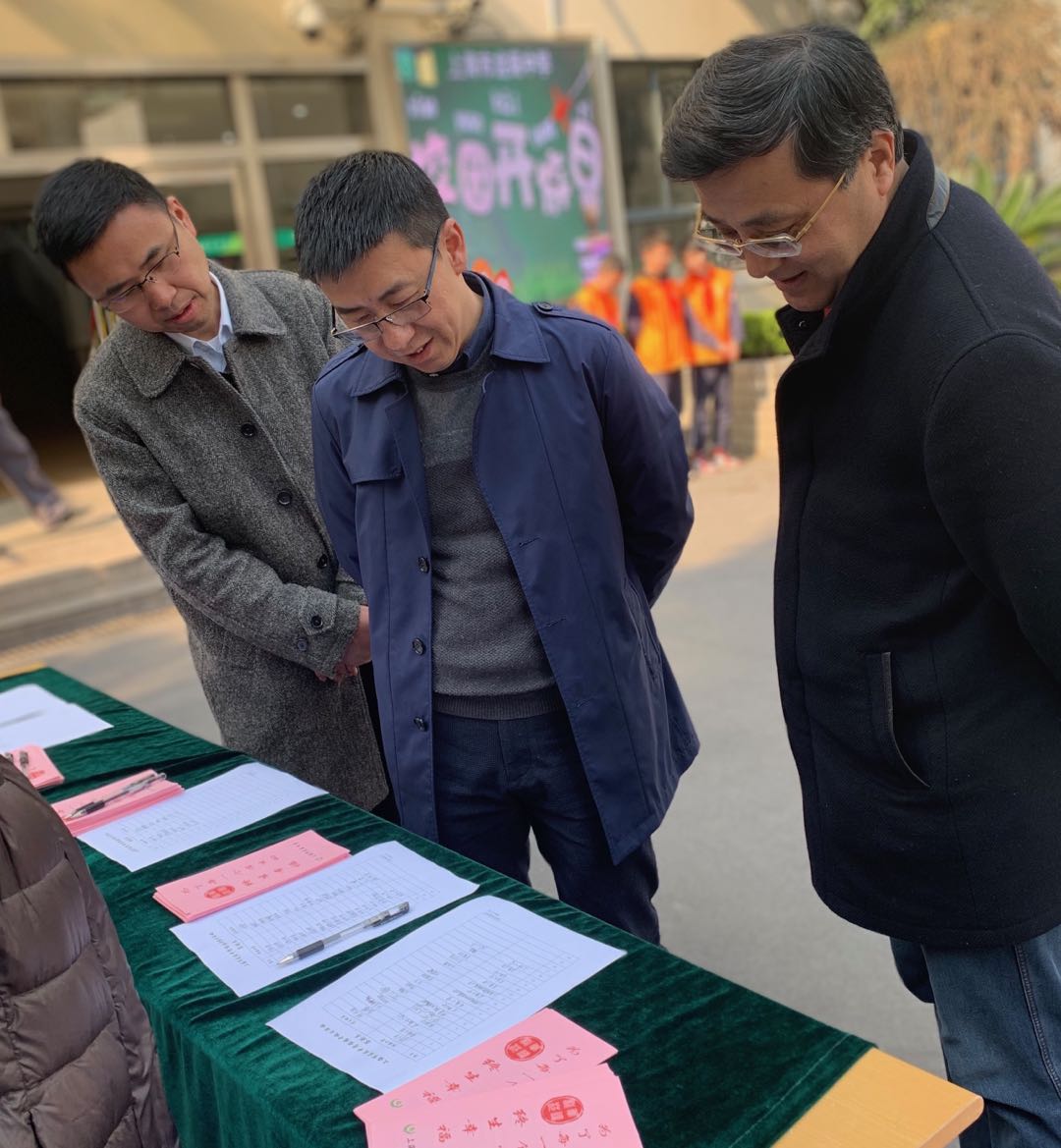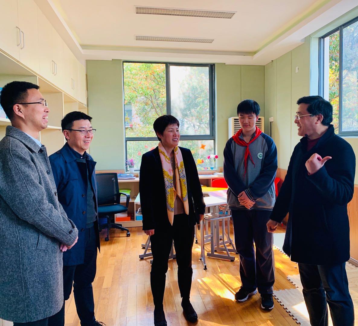 下午,教育局党工委书记姚书记、陆局、奚科等一行来校视察,在张校长和学生志愿者的带领下,局领导跟随着学生和家长的人流一同体验了我校的特色课程。