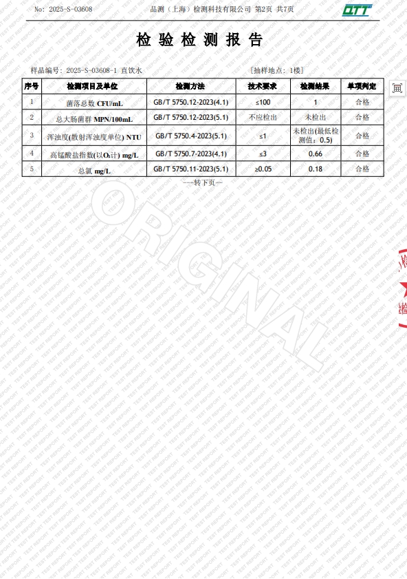 龙苑中学2024年6月直饮水质量检验报告