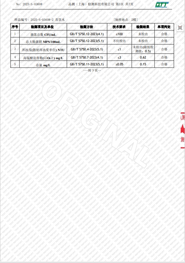 龙苑中学2024年10月直饮水质量检验报告