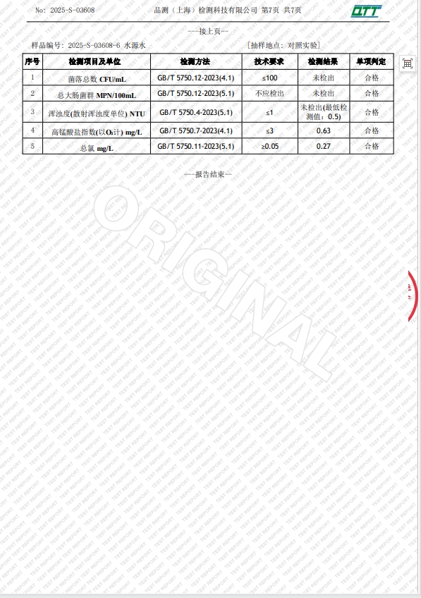 龙苑中学2025年2月(学期检)直饮水质量检验报告
