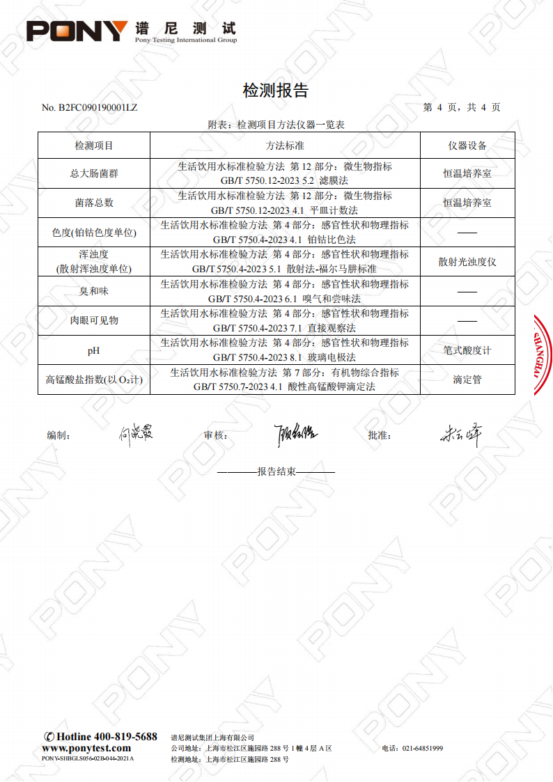 龙苑中学2024年4月直饮水质量检验报告