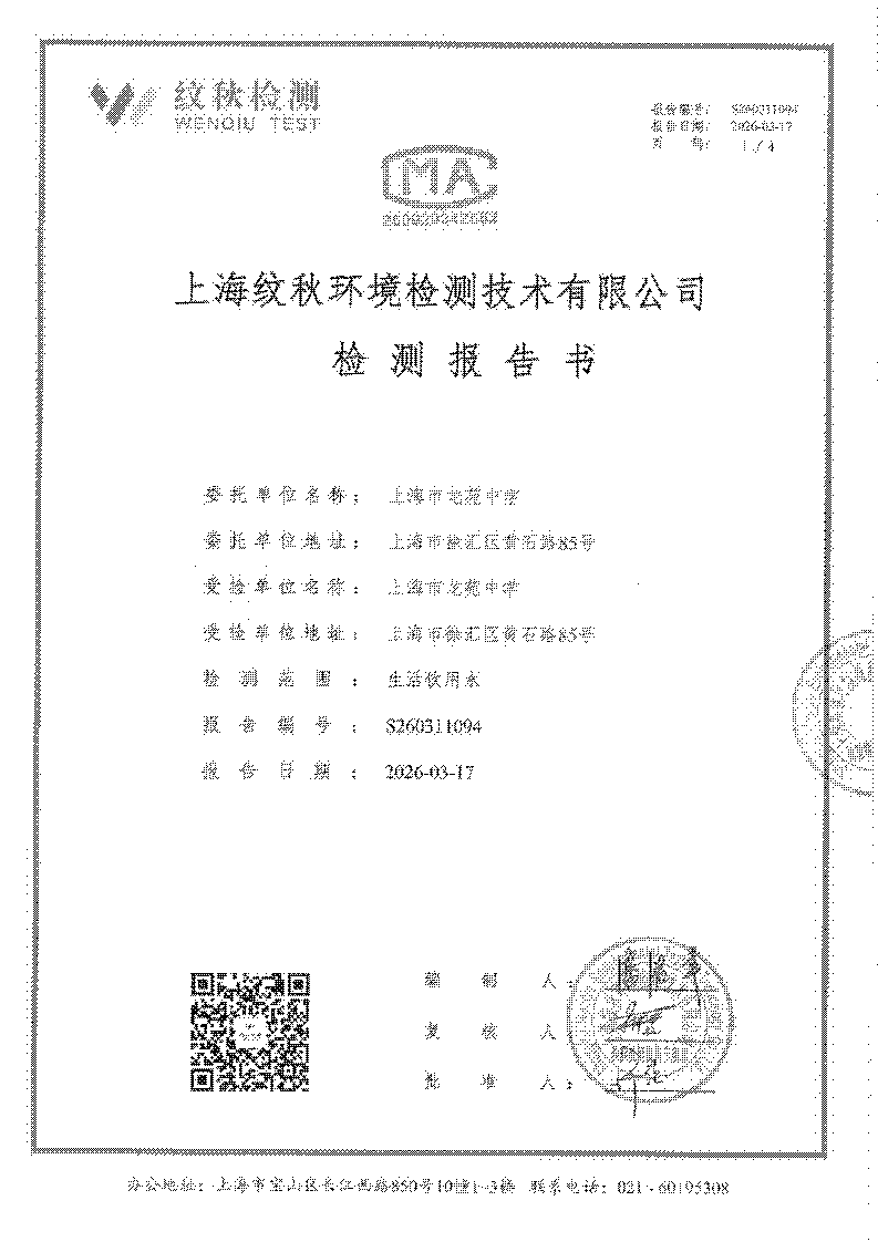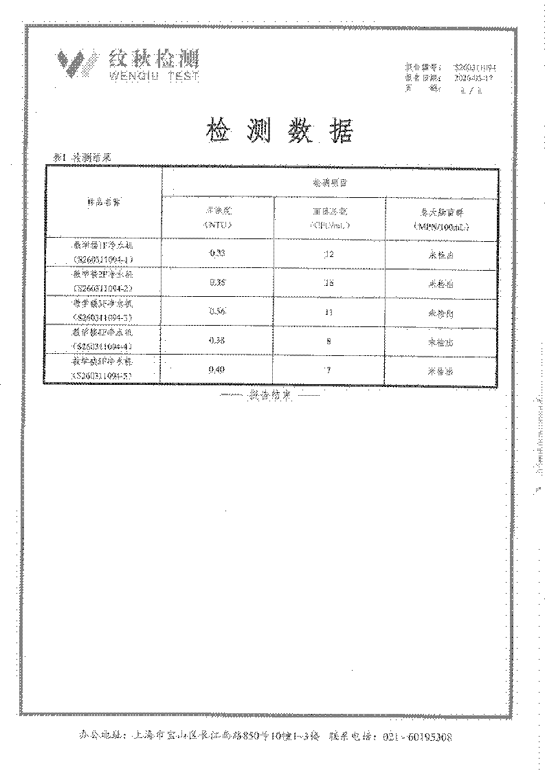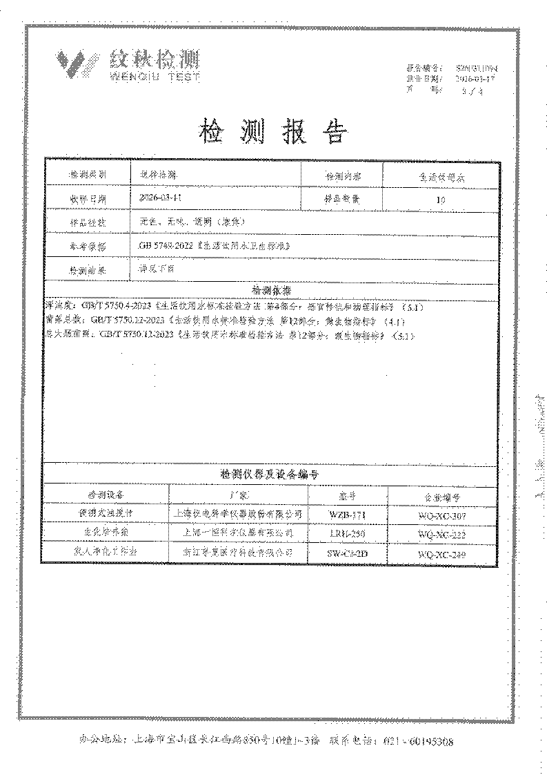 龙苑中学2026年3月直饮水质量检验报告